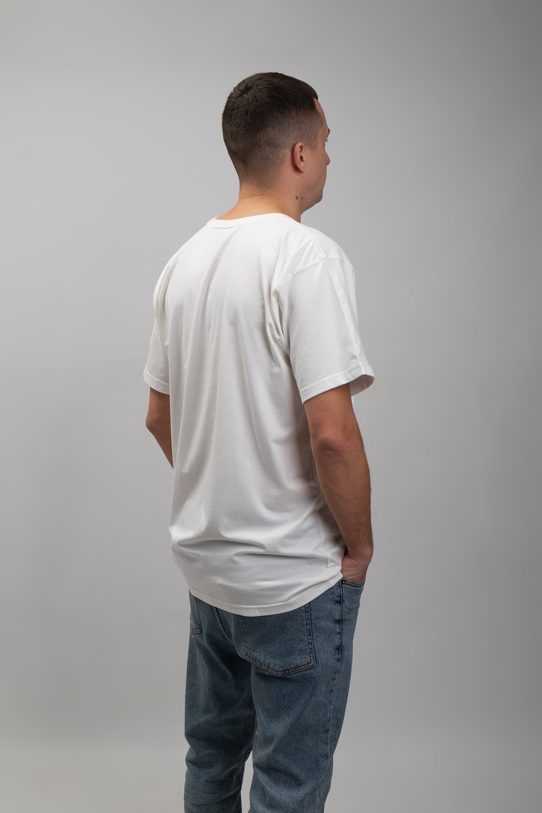 The t-shirt is made in Ukraine and the unique minimalistic design is embroidered in Finland. Material - cotton knit (95% cotton, 5% elastane). Check the size chart for the best fit. Our model Mariia is 161cm and wearing size XS, Max is 180 and wearing size L.